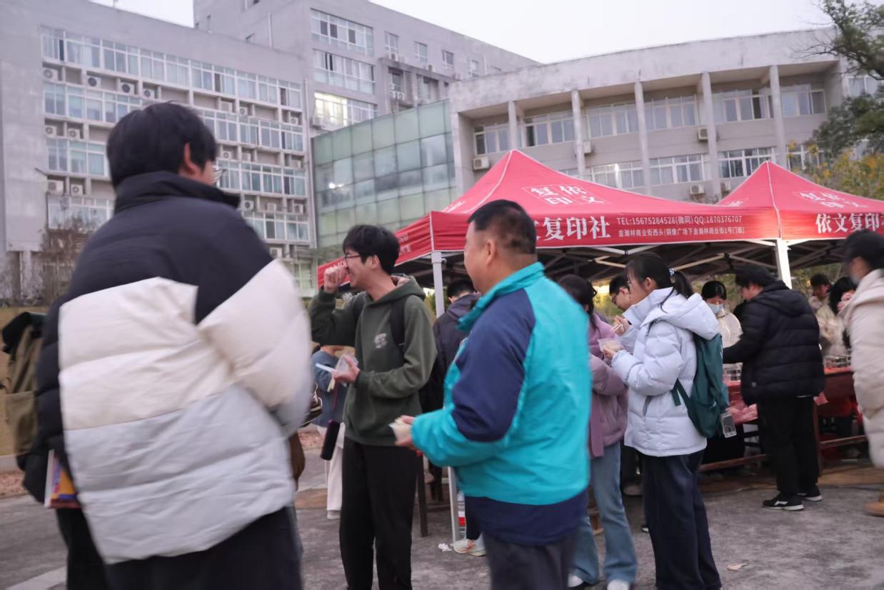 “走出考场的时候还觉得心里沉甸甸的,看到学院准备的饺子,一下子就感受到了温暖。”一位刚领取完饺子的同学擦了擦眼角,笑着说道,“备考的这一年里,每天泡在图书馆和自习室,压力特别大,学院的这份心意让我觉得所有的努力都被看见、被珍惜。吃到带硬币的饺子时,我心里一下子就踏实了,不管结果如何,这段奋斗的经历都很珍贵,也谢谢学院在冬至给我们这份特别的慰藉。”
